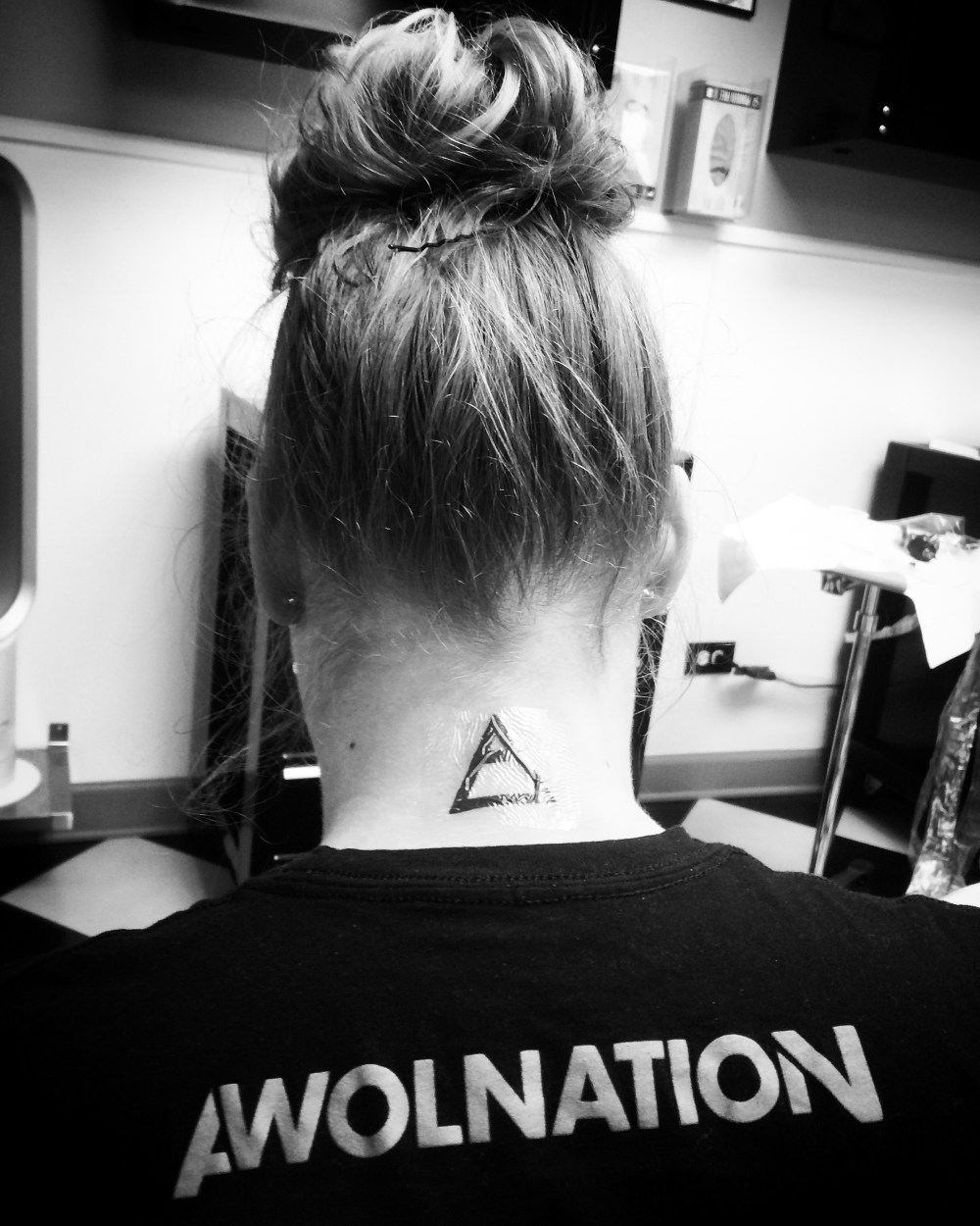 As a writer I think it was the right move to get meaningful words written as if they were stamped with a typewriter. Also, I like the meaning of her triangle. No she didn’t get it because Jared Leto has two of the same, though that’s not a negative. The singer and I have the same birthday, just thought I’d mention, might help people remember mine. After looking through the photos from today I felt inspired to write a little tattoo tale, so come with if you please, to read even deeper than the dermis this ink of hers now rests in.