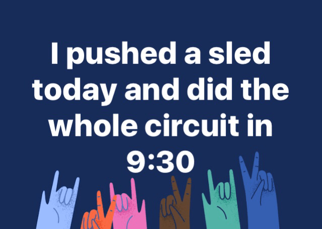 When I train I hardly notice who is in the class with me, partly because I don’t want to be distracted with comparison and partly because training takes all of my focus. It is nice though, when a big dude drenched in sweat uses what little energy he has left from the WOD to walk over as I’m warming up, introduce himself and say; “I saw the video of you with the sled, you fucking rocked it.” CF is a supportive community, CFHG in particular. See lesson 6. Lesson number 10 is very real for a tenacious woman like me, here’s a slice on why I love my coaches so much: “Everyone meet Jena. She just joined @cfhomerglen. She came to us wanting to improve her overall fitness. Jena has already become one of our most motivating and hard working members. Jena will try anything I throw at her to see if she is capable of doing it. We had a 200 meter run with a weighted ball in class today so we replaced her run with a 100ft prowler push. When I told her we were going to try and push the prowler she didn’t laugh and say yeah right, she smiled real big, got excited and couldn’t wait to try it out. Jena isn’t using CP or anything as an excuse, she is using it to motivate her to work hard and improve her quality of life. It’s going to be awesome to she how hard she works and improves over time.” @bridgetahlfield @crossfit @crossfitgames #whatsyourexcuse