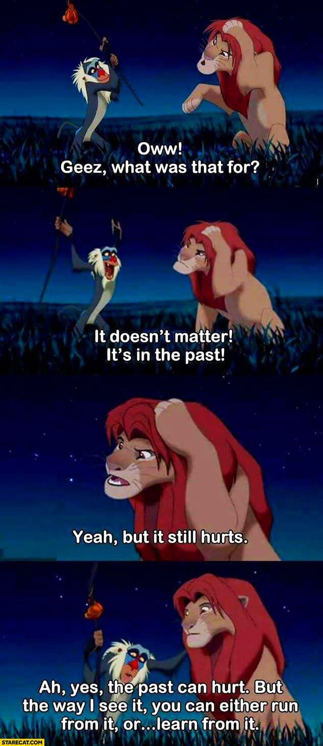 They decided to sing ‘Can You Feel The Love Tonight?’ during the day. Hard one to mess up but they did it. Also, in that scene where Nala uses her come-hither stare, recognized later in the rewatching of adulthood, was cut out. The spirit of Mufasa is not seen in the clouds even though this is foreshadowed to his son while Mufasa was still on earth. We only hear his voice and it’s confusing because CGI Simba walks into the water, looking into the sky and we see no spirit of the king. Another profound moment of emotion sorely missed. How do we know what to do if we don’t remember who we are?