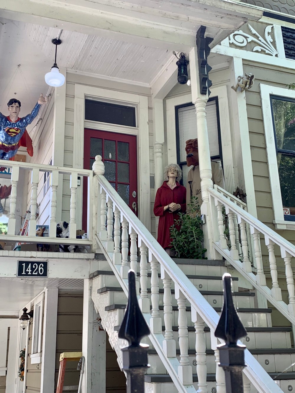 Tom adjusting the mannequin of Puente he put together himself, saying, “oops, boobs are sagging.” Laughter is the cure.