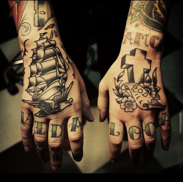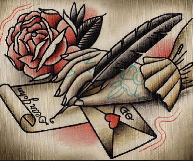 The summer of 2012 is when she began selling her traditional style tattoo prints after losing her job at the Santa Ana Police Department. When people started to discover her work, creating art in a tattoo style was not intentional. “I was a failing pop surrealist painter.” It was when she took a break to draw up some personal tattoo designs that she found a flow to go with.
